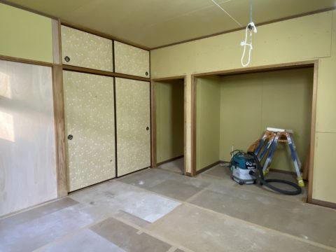 今回の工事も、お客様が住みながらの工事を行いましたので、荷物や寝る場所などを違う部屋に移動させてもらい、工事を行いました。