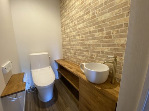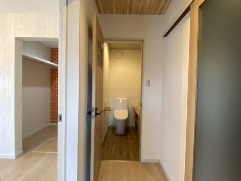 廊下には、手洗いカウンター付のトイレも計画しました。元々の住宅にトイレが1つしかなかったため、日頃のトイレの使い勝手を考慮してトイレスペースを追加しました。