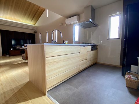 キッチンもWOODONEさんのキッチンにすることで、フローリングと同じ色合いになるため、統一感のあるLDK空間となりました!